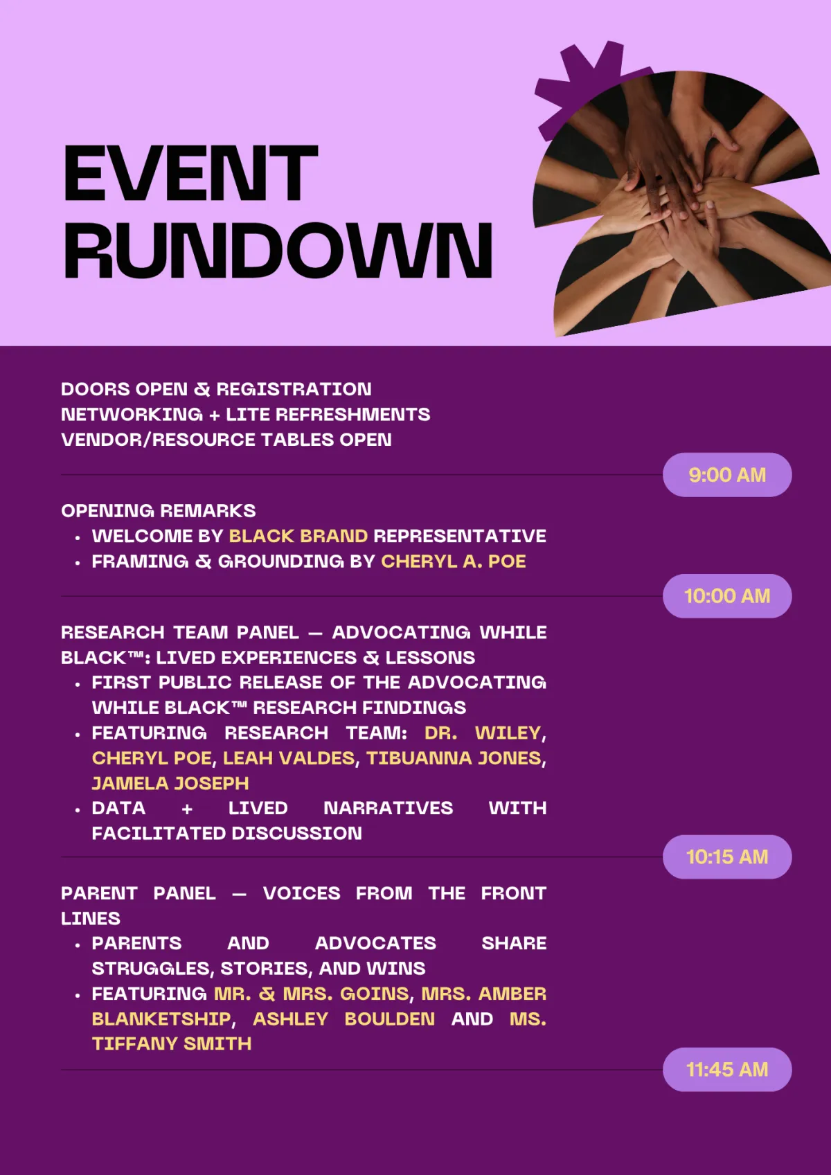 A powerful Parents’ Panel featuring Black parents sharing their lived experiences.