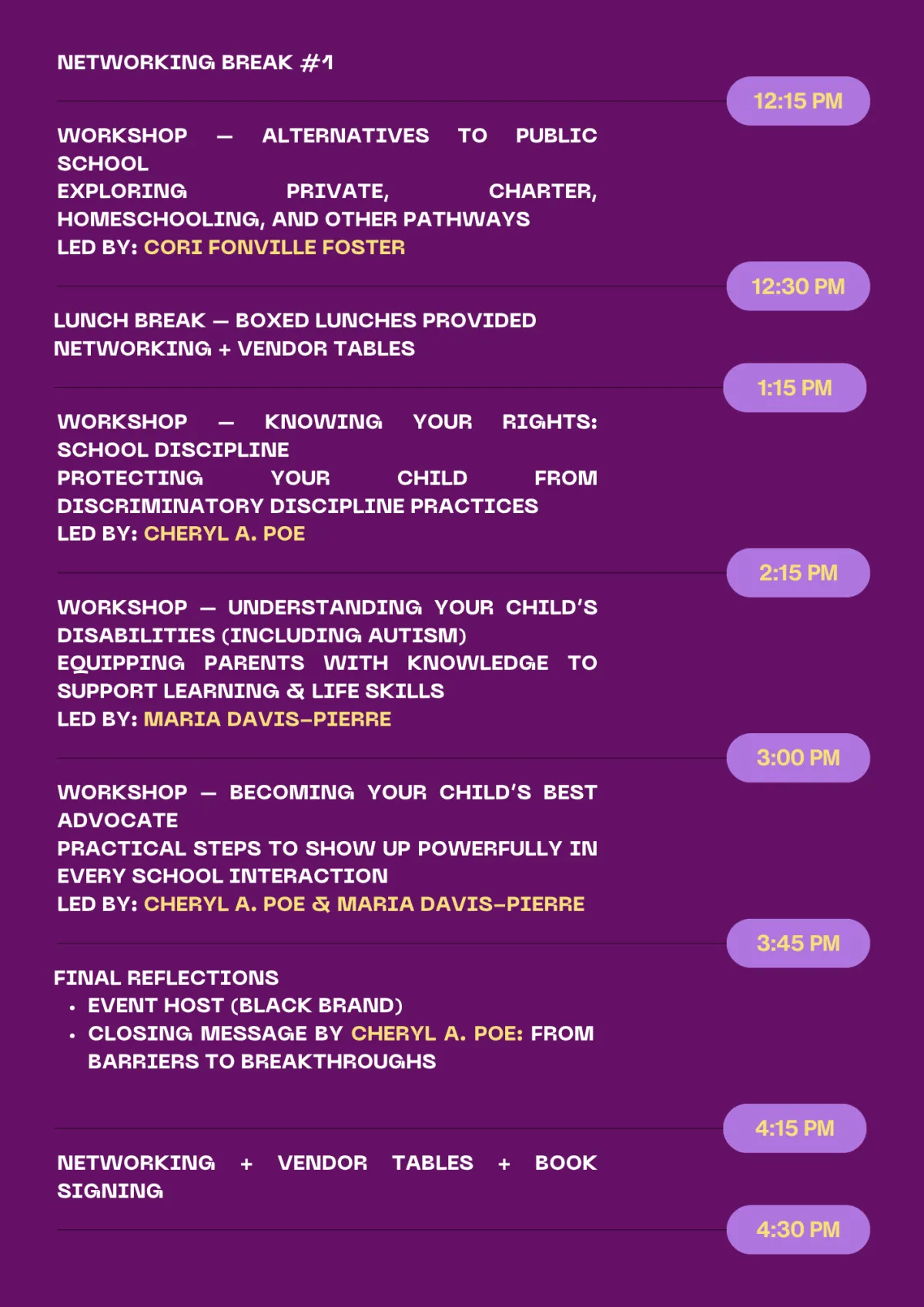 The day is packed with essential information and community connection, including: